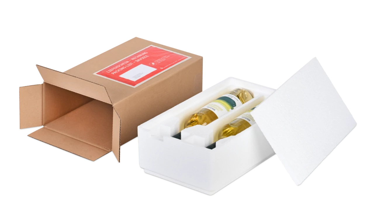 EPS- oder rEPS-Thermoboxen überzeugen mit ihrer sehr hohen Isolierwirkung bei geringem Eigengewicht und hoher Bruchstabilität. Damit sind auch längere Transportzeiten möglich. Thermoboxen aus EPS können Sie in einem passenden Umkarton aus Wellpappe verschicken, das stabile Material ist stoßdämpfend. Da es schon aufgebaut ist, sparen Sie zudem Zeit beim Verpacken. Übrigens gibt es auch spezielle Formteile aus EPS und rEPS, die für den Versand von Flaschen bestens geeignet sind.