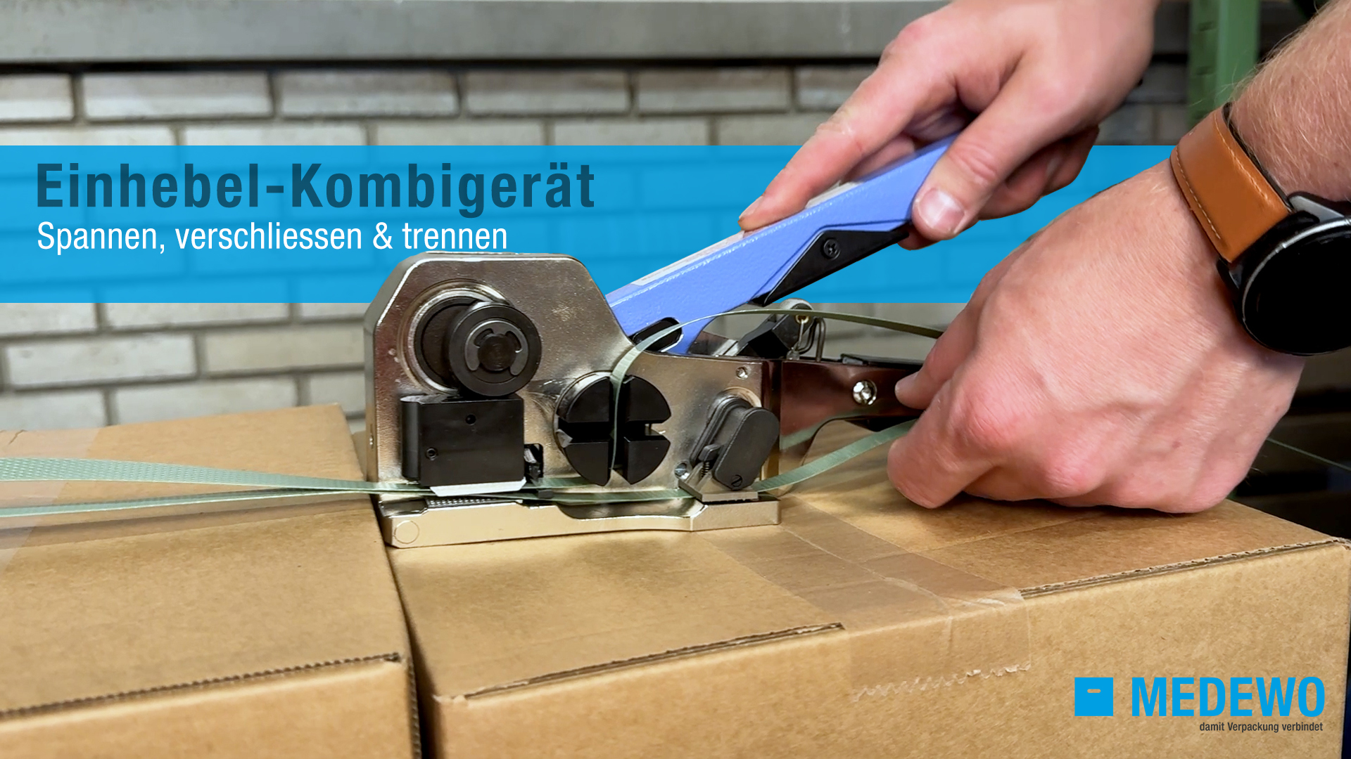 Das Einhebel-Kombigerät vereint das Spannen, Verschließen und Abtrennen von Umreifungsbändern – alles in nur einem ergonomischen Werkzeug. Hergestellt für professionelle Anwender, meistert es PET-, PP- und Papierumreifungsbänder zuverlässig. Sein robustes Design, gepaart mit der passenden Verschlusshülse, gewährleistet höchste Verschlusskraft – sogar bei horizontaler oder vertikaler Anwendung.