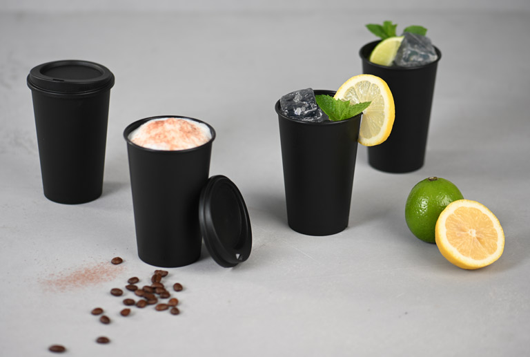 Nos gobelets réutilisables de haute qualité sont tous fabriqués en PP (polypropylène) et ne contiennent pas de BPA. Le couvercle des gobelets correspondants est en HDPE.