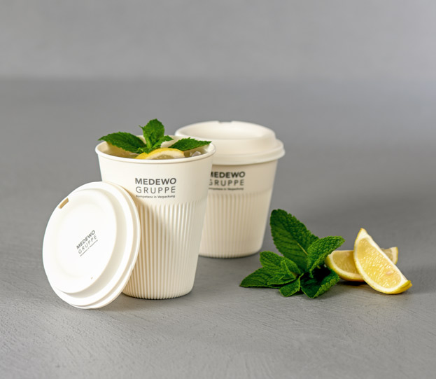Les gobelets blancs sont nervurés, ce qui les rend particulièrement faciles à tenir en main.