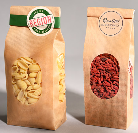 - Présentation attrayante et protection : les sachets offrent une présentation attrayante de vos produits grâce à une fenêtre intégrée en film OPP qui permet de voir directement le contenu. Cela facilite la décision d'achat des clients. En même temps, la structure robuste des sachets protège le contenu contre les influences extérieures telles que l'humidité et la poussière.