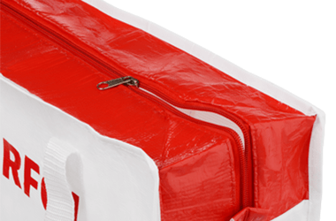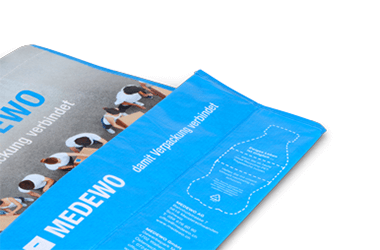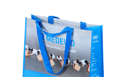Montrez votre conscience écologique! Pour les sacs imprimés en rPET, le recyclage joue un rôle essentiel. Des bouteilles PET vides nettoyées sont déchiquetées, fondues et transformées en granulés. Ceux-ci servent à produire votre nouveau support publicitaire sous forme de sac à emporter qui – dans le sens de la durabilité – peut bien sûr être utilisé plusieurs fois grâce à sa stabilité.
