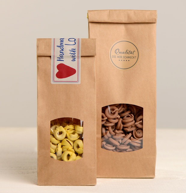 Nos solutions d'emballage séduisent par leur facilité d'utilisation et conviennent parfaitement aux distributeurs directs ou aux petits fabricants de produits alimentaires. Les sachets se remplissent sans effort et se ferment de manière sûre, que ce soit avec des clips, des bandes de fermeture ou des clips décoratifs. Grâce aux différents formats disponibles, vous pouvez emballer vos portions de pâtes de manière flexible. Même pour les petites quantités, vous bénéficiez d'une solution d'emballage économique, fonctionnelle et esthétique.