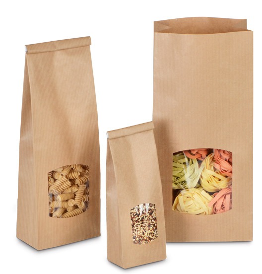 Sachet à fond plat en papier kraft à fenêtre5 ArticlesÀ partir de 0.095 CHF / pceAssortiment en stock -