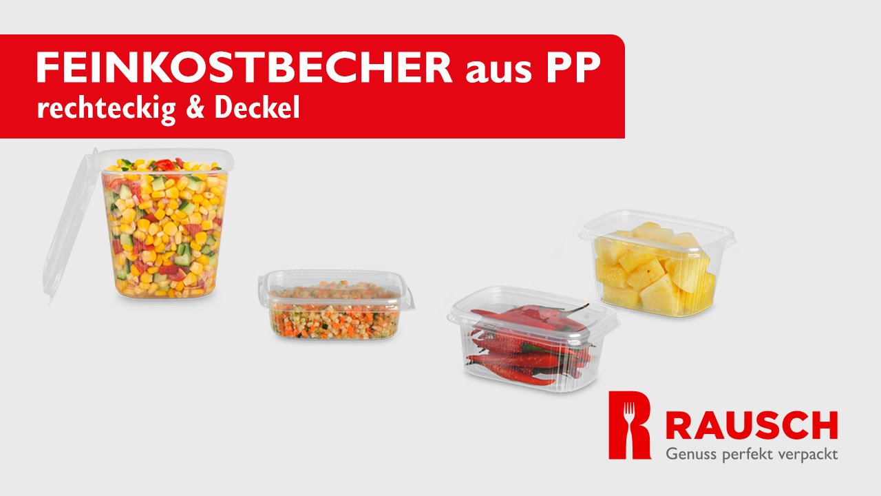 Feinkostbecher aus PP rechteckig & Deckel