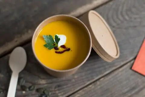Dieser hochwertige To-go-Becher mit auslaufsicheren Nähten ist in Verbindung mit dem optional erhältlichen PP-Deckel die ideale Verpackung für Soup-to-go, Speisen mit Sauce usw.- extra starke Pappe mit hochwertig verschweissten Nähten – innen und aussen PE-beschichtet