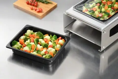 + 70 °C bis zu 2 Stunden - zum sicheren Versiegeln – da besonders breite und ebene Ränder oder mit transparentem, fest sitzendem Deckel